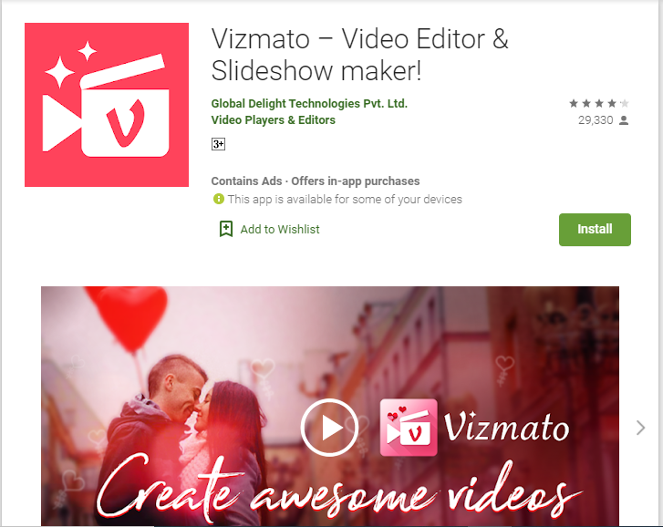 Price: Free plan; Vizmato Pro costs $11.99 per year; In-app purchases available for $0.99–16.99 per item.